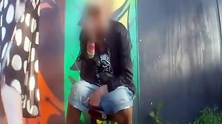 flagVoyeur is spying and recording two girl pissing in the wood
