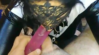 flagLeather Lingerie MILF Anal Beads & Dildo Ride