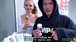 flagPublicAgent honey gets paid extra Christmas cash for orgy with stranger