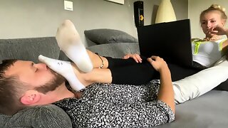 flagAwesome hottie has slave take up with the tongue shoe sole